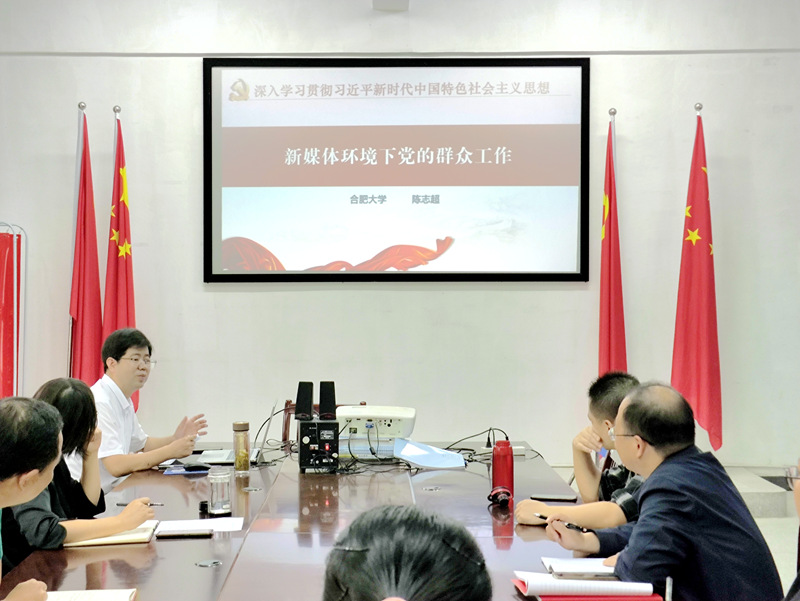 为进一步落实立德树人的根本任务,强化马克思主义学院在价值引领和育人方面的实效,持续推动思想政治教育工作高质量发展。10月18日下午,马克思主义学院在3号教学楼106会议室举行《新媒体环境下党的群众工作》专题讲座,本次讲座邀请合肥大学陈志超教授主讲。马克思主义学院全体无课教师参会,会议由马克思主义学院院长余锋主持。