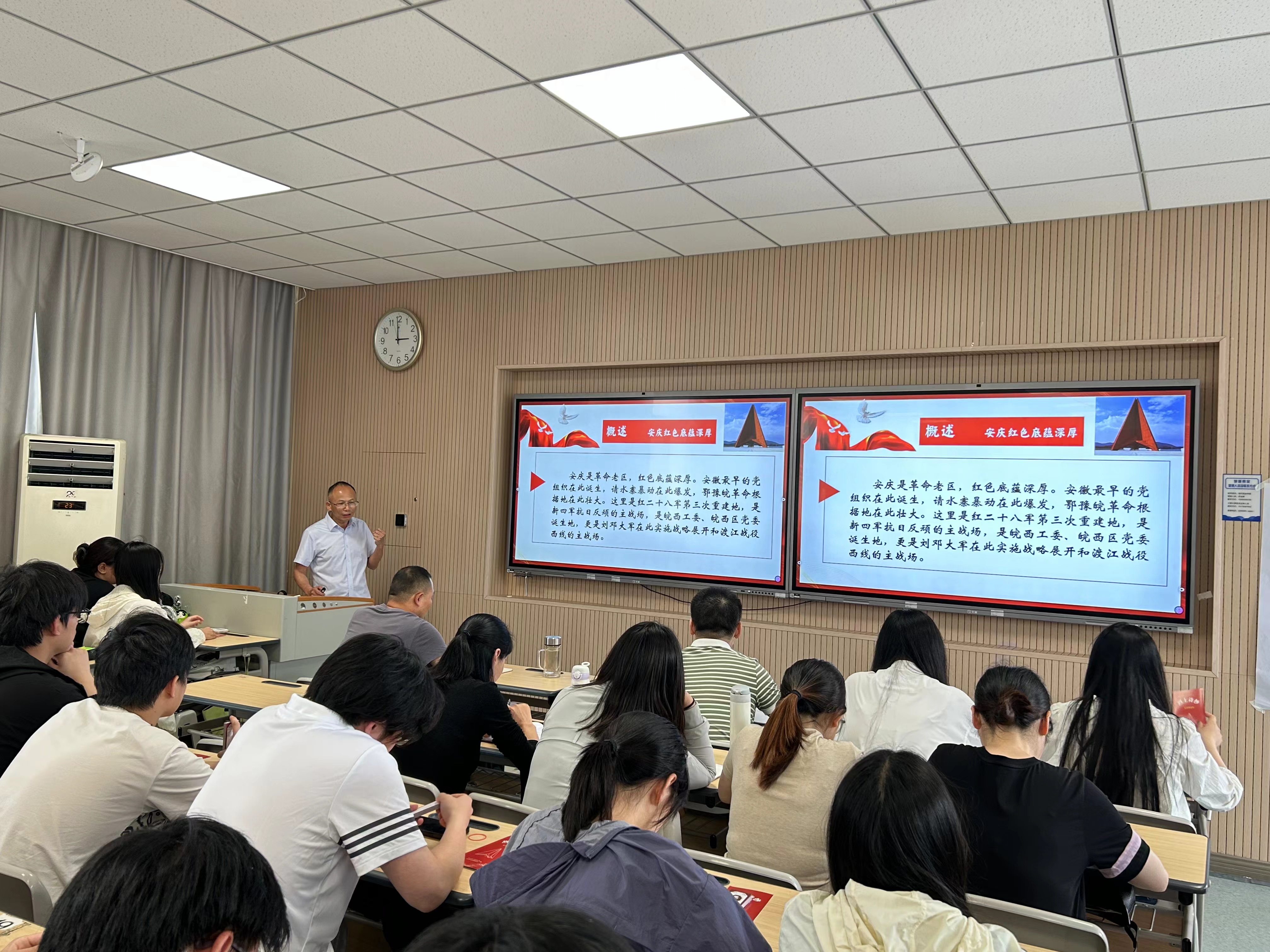 为推动建立理想信念教育长效机制,引导青年学生铭记历史,致敬英雄,坚定理想信念,厚植家国情怀,5月28日下午,马克思主义学院特邀安庆烈士陵园主任黄平为广大师生开展以“血沃安庆红,浩气传千秋”为主题的安庆红色故事专题讲座。