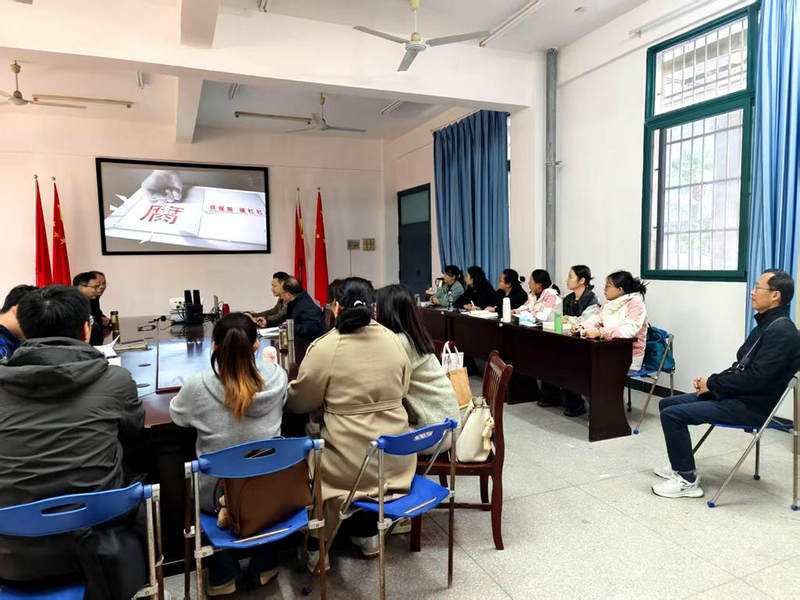 为推动党纪学习教育走深走实,抓好以案促学、以案说纪,教育引导党员进一步严规矩、明底线、知敬畏,10月22日下午,马克思主义学院在三号教学楼106会议室集中观看警示教育片《一刻不松 寸步不让》,传达学习违反中央八项规定精神典型案例,推动作风建设常态化长效化。马克思主义学院全体党员教师参会。
