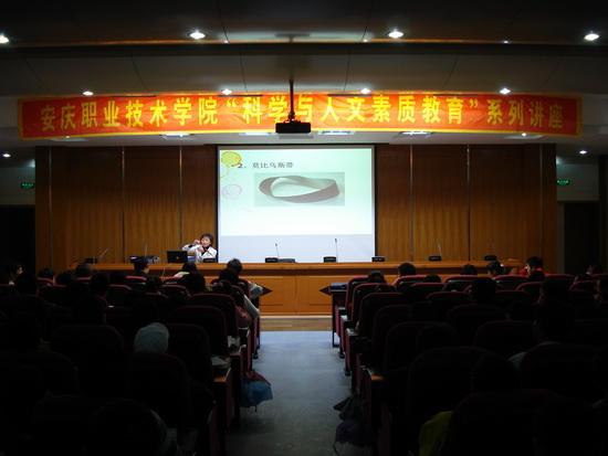 10月30日晚,我院2008——2009学年度第一学期“科学、人文、艺术素质教育系列讲座”讲座继续进行,院学生处处长、团委副书记高润霞老师做“给你一双数学的慧眼”专题讲座。高处长结合生动的案例,从“用数学的眼光看游戏”、“用数学的眼光看人生”、“用数学的眼光看艺术”、“用哲学的眼光看数学”和“用艺术的眼光看数学”等方面,展示数学的魅力,引导学生一起尝试着用数学的眼光去理解一些事物,鼓励学生结合自身的专业特点,学好并运用好数学,用数学的一双慧眼去发现和寻找我们身边更多的精彩。高处长的讲座文理渗透,师生互动,深受学生欢迎。