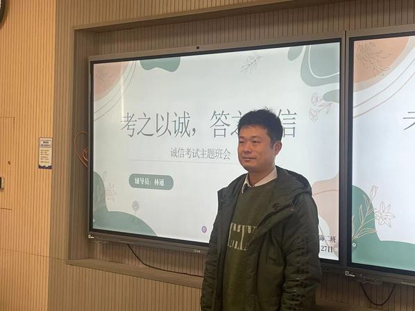 “原本对考试有点投机心理,案例分析把我‘敲醒’,想到作弊可能断送学业,后怕不已。现在每天按计划复习,心里踏实。”2023级建筑装饰1班的小张同学在主题班会课后说。全校各班级主题班会如期召开。班会上,辅导员们认真、详细地宣讲和解读了期末考试工作安排的通知和学生违纪处理暂行办法的具体条款。通过生动的案例分析和严肃的态度表达,向学生传达了学校严肃考风、考纪的决心和态度,警示学生考试违规的严重后果和影响,帮助同学们树立正确的价值观和考试观,让“诚信”二字深深扎根于每位学生的心中。