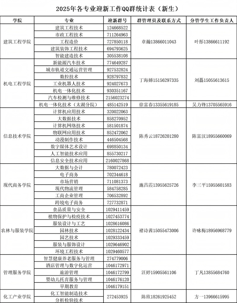 (五)为准确发布新生报到工作信息,各学院建立2025级新生官方QQ群号,请同学们按录取专业申请进群,并实名认证。