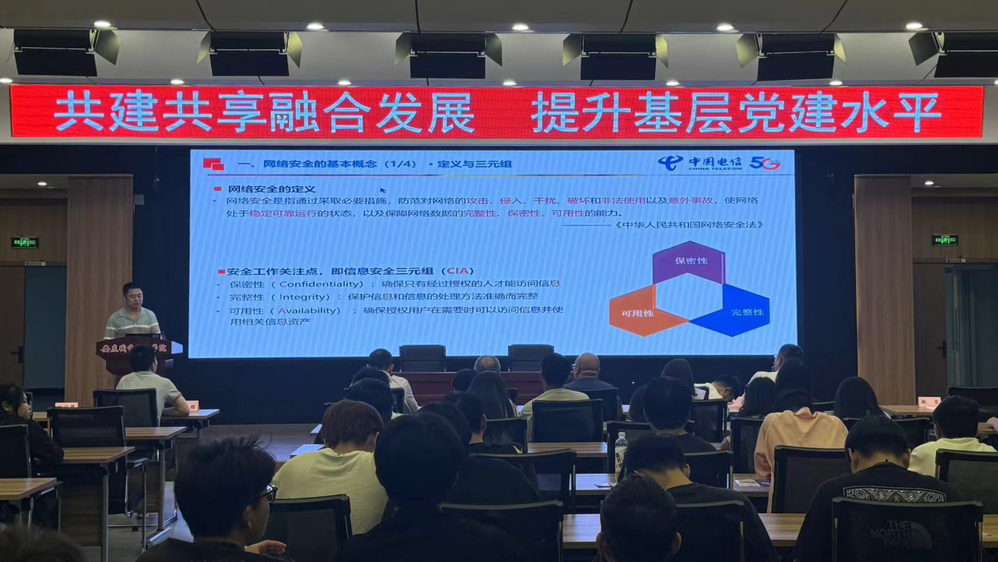 安庆电信公司网络与信息安全管理部专家为现场师生做了网络安全专题培训,普及网络安全知识,提升师生网络安全意识和防护技能。