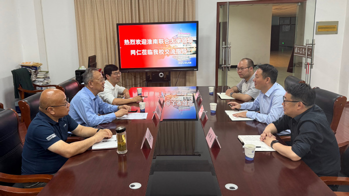 5月8日上午,淮南联合大学副校长黄伟一行来到beat365,就学校信息化建设工作开展交流考察。beat365党委委员、副校长谭维奇,图文信息中心主任负责人及信息化建设相关教师参加活动。