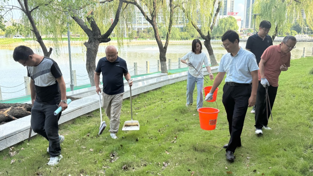 随后,图文信息中心直属党支部9名党员开展了美化环境义务劳动。天气虽然炎热,但大家激情满怀,干劲十足,拿起劳动工具,弯下身子,认真清理地上的纸屑、塑料袋、杂物及枯枝败叶,让图文信息中心大楼四周变得更加干净整洁。(文、图:赵 力 审稿:许迪楼)