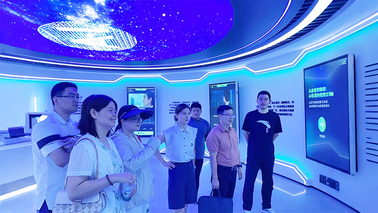 在高密度算力集群区域,调研组参观了算力资源池。该集群不仅绿色节能,还具备千柜级扩容能力,为未来数字经济发展提供了有力支撑。在智慧中枢控制展厅,师生体验了智能神经中枢系统、AI预测性运维平台以及三位一体安防体系,切实感受到数字科技在城市管理与安全保障中的深度应用。