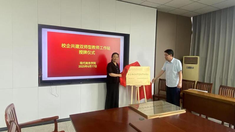 6月17日下午,现代商务学院与安庆协成商务服务有限公司、安徽云霁电子商务有限公司举行“校企共建双师型教师工作站”授牌仪式。安庆协成商务服务有限公司总经理杨根莲,安徽云霁电子商务有限公司总经理汪义德,现代商务学院院长金启胜,教学管理工作和学生工作负责人参加仪式并进行座谈。