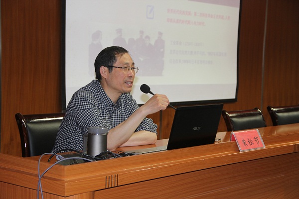 5月17日晚,科学人文艺术素质讲座第四讲《近代安庆工业文明及其意义》在图文信息三楼学术报告厅举行。本次讲座邀请公共基础部、思政部朱松节主任主讲,各系近200名学生代表聆听了讲座。