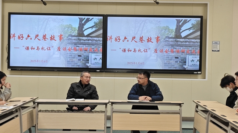 1月6日,现代商务学院组织开展“讲好六尺巷故事——谦和与礼让精神座谈会。学院学生工作负责人主持会议,学院桐城籍学生和各班级学生代表参加会议。汪全报博士作为特邀嘉宾出席会议。