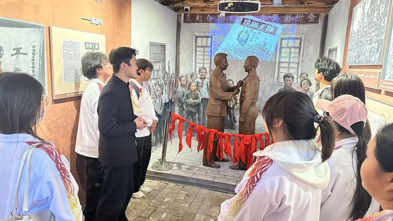 活动当天,师生们怀着崇敬的心情步入读书处。馆内陈列的珍贵文物、历史照片和详实史料,生动展现了陈乔年、陈延年短暂却波澜壮阔的一生。这里见证了他们从进步青年成长为坚定马克思主义者的思想蜕变,是传播革命火种的重要阵地。