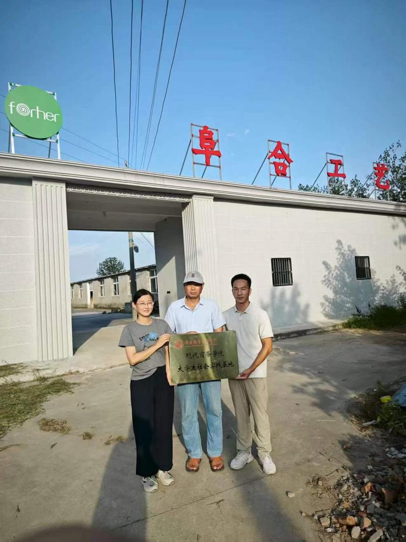 现代商务学院师生到阜南佳利工艺品股份有限公司开展“大学生社会实践基地”揭牌仪式暨暑期“三下乡”社会实践调研活动