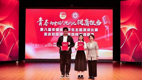 本次演讲比赛以“青春为中国式现代化挺膺担当”为主题,14名来自各二级学院的选手带着对时代的思考、对青春的热忱站上舞台,以“红色江淮,共话传承”“皖美青春,共叙乡情”“实践实习,共促成长”“以‘科’致远,共谋发展”“好城好房,共筑安居”五大维度为脉络,展开了一场充满朝气与激情的精彩角逐。比赛中,选手们紧扣主题,结合时代变化,立足自身成长,用生动的故事复刻红色记忆,用质朴的语言讲述青春感悟,用饱满的情感传递信念,充分展现出当代大学生积极向上、奋发有为的精神风貌,为现场每一位观众带来了深刻的思想启迪与强烈的情感共鸣。
