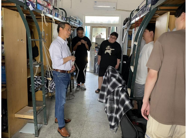 为贯彻落实 “一改两为”会议精神,进一步夯实作风建设、筑牢校园安全防线, 4月24日下午学院党总支开展了 “党员结对守初心、潜心育人深检视”为主题的党员教师结对进寝室活动,全体年轻党员教师及入党积极分子共同参与本次活动。