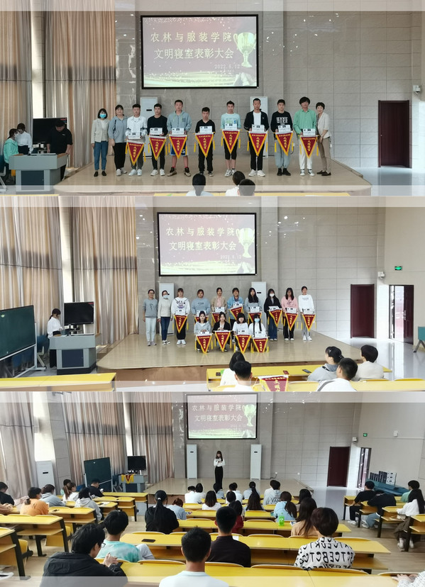 为营造安全、整洁、卫生的寝室环境,助力学生养成健康的生活习惯,提振学生精神面貌,树立良好的寝室学习风气,农林与服装学院于2022年4月结合爱国卫生月开展了寝室卫生及文化建设活动,5月12日,学院为本次活动中的文明寝室举行了隆重的颁奖仪式。