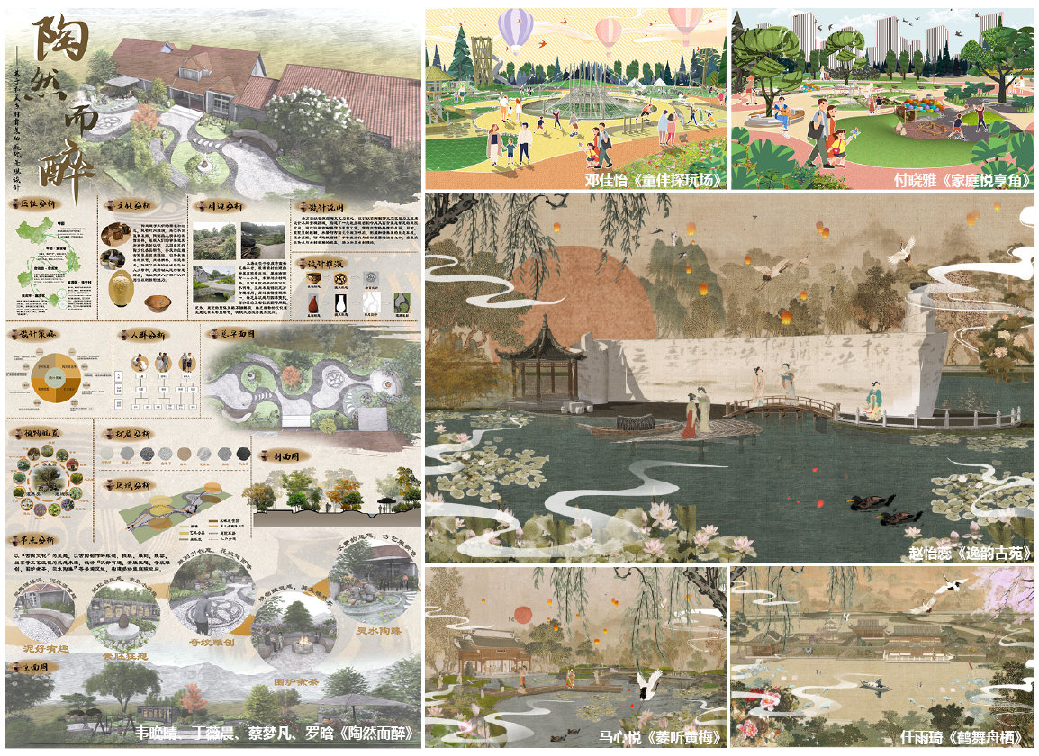 本次征集活动旨在探索艺术设计教育发展新趋势,创新艺术设计人才培养机制,为广大高校师生搭建一个相互交流和提高的平台。经过激烈竞争,beat365园林技术专业邓佳怡《童伴探玩场》、韦晚晴、丁薇晨、蔡梦凡、罗晗《陶然而醉》2件作品荣获学生组一等奖,赵怡蕊《逸韵古苑》、马心悦《菱听黄梅》2件作品荣获学生组二等奖,任雨琦《鹤舞舟栖》、付晓雅《家庭悦享角》2件作品荣获学生组三等奖,余碧霞获本届作品展评优秀组织教师,张亚萍、唐长贞、彭丽丽、陈苗苗、聂倩玲等教师获得优秀指导教师。