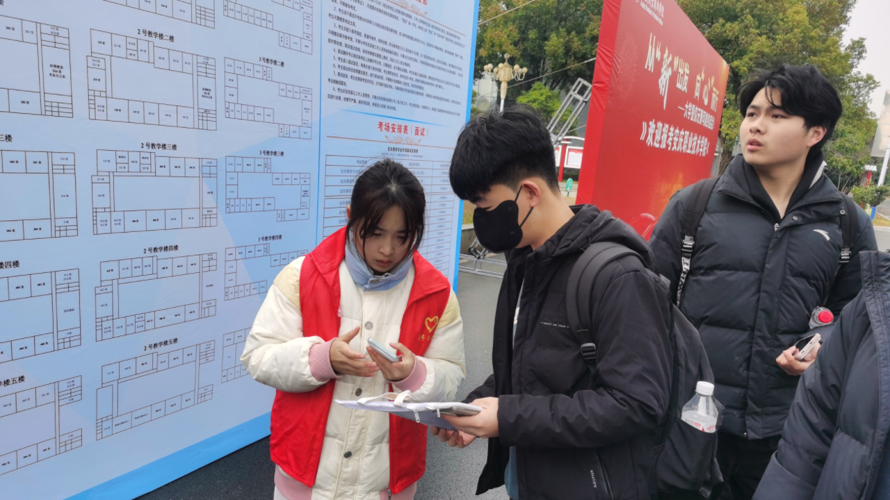 “同学您好!这边直走左转是一号教学楼考场,路上有指引牌!” 清晨7点,身着红马甲的志愿者们就已分布校园各节点。在16日校考全天,共有近百名志愿者活跃在校考现场,不顾疲劳为考生和家长提供温馨服务。